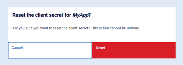 3. Users will be asked to confirm the API Secret reset, since this will invalidate previous API Secret. Click on reset.